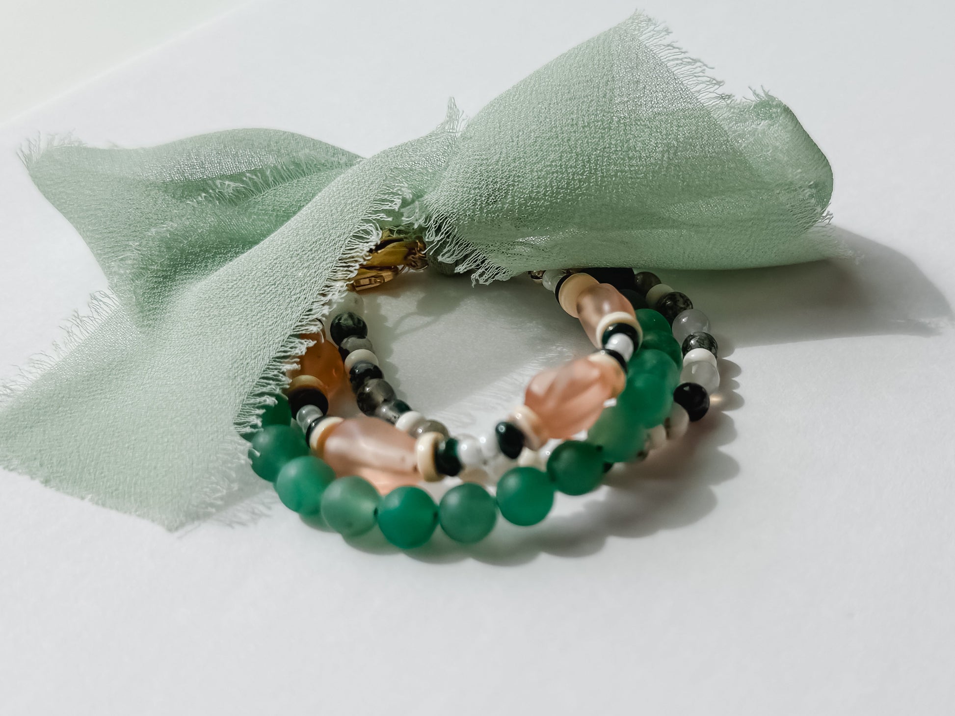 This bundle comes as a set of the three bracelets pictured. Made with high quality stainless steel cord and gold-filled components. Expect durability. Will not tarnish. Meant for daily wear. Water-safe.